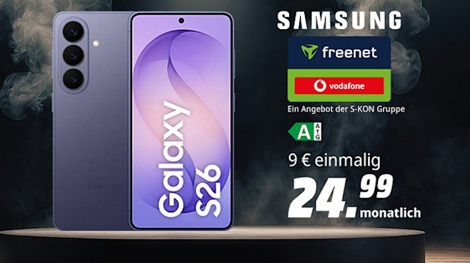 (Link führt auf eine externe Website.)Sichere dir jetzt das neue Samsung Galaxy S26 (256 GB) im freenet Vodafone Allnet 40GB Tarif für nur 24,99 € monatlich und 9 € einmalig40 GB Datenmax. 50 Mbit/sFlat Telefon & SMS- Gesponsert