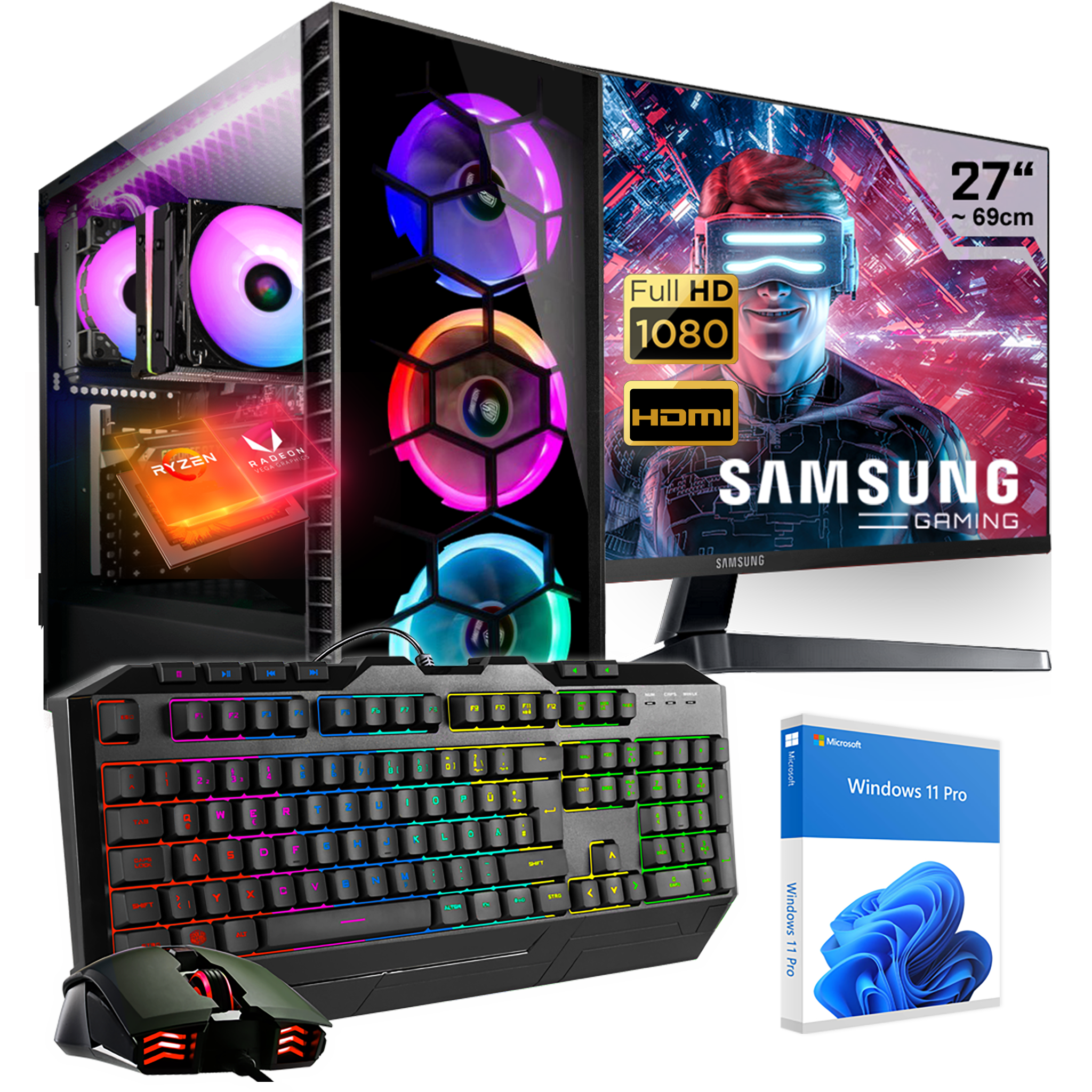KRAFTPC Komplett-Set, Gaming PC mit AMD Ryzen™ 7 5700G Prozessor, 32 GB RAM, 1000 GB SSD, AMD Radeon™ RX Vega, Windows 11 Pro