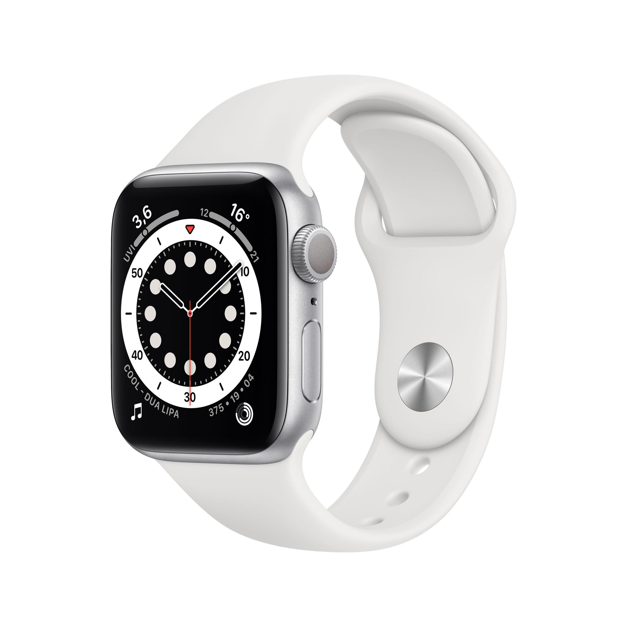 APPLE S6 GPS 40 SILVER ALU WHITE SPORT Smartwatch Aluminium Fluorelastomer, 130 - 200 mm, Silber/Weiß