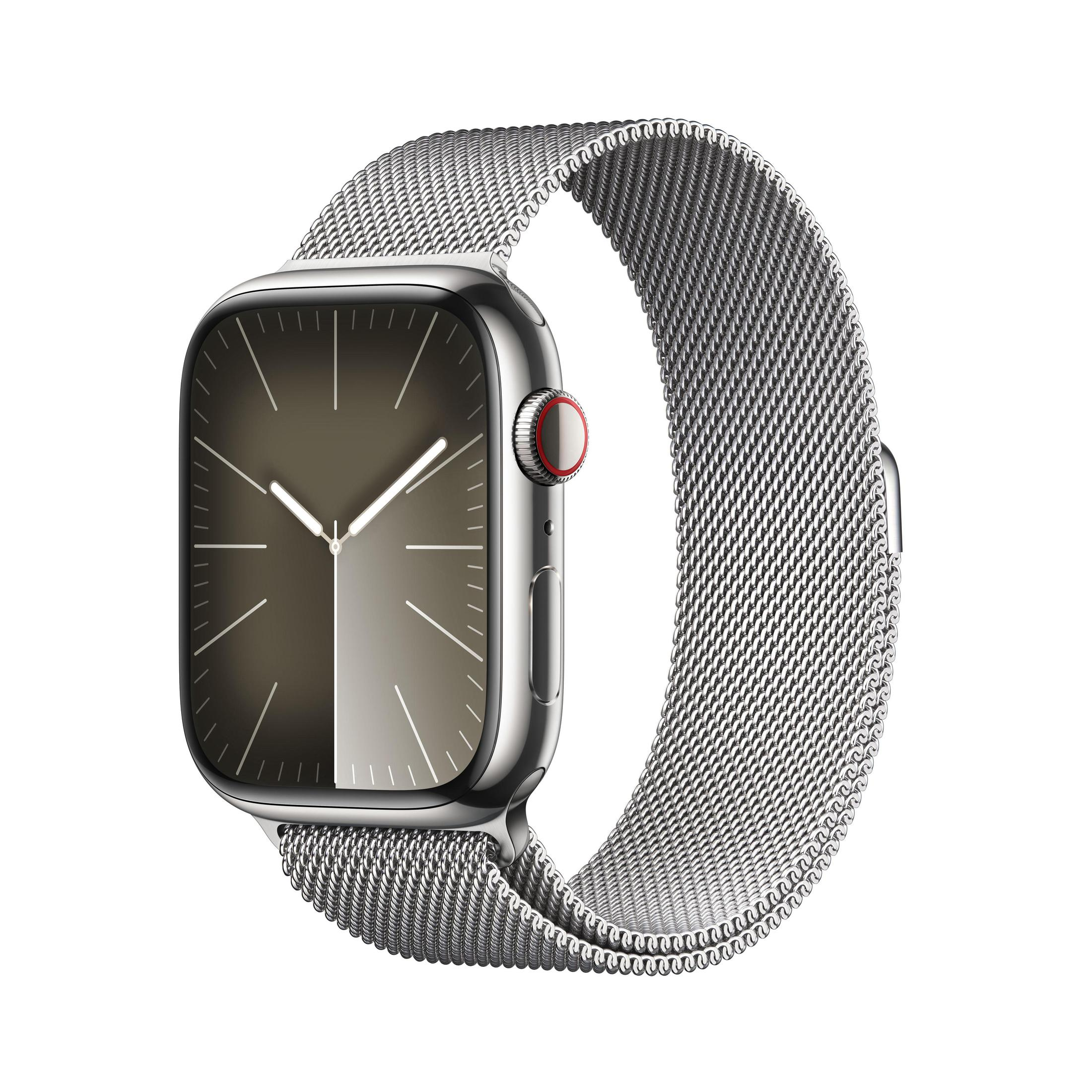 APPLE S9 45 STE CEL SILVER (SILVER+MILA+LOOP) Smartwatch Edelstahl Milanaise, 150 - 200 mm, Silber