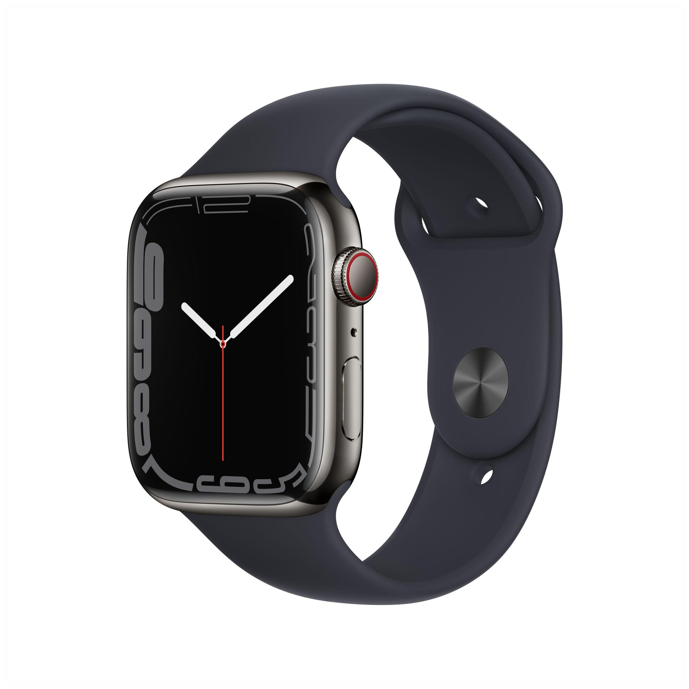 APPLE S7 GPS + CEL 45 GRAPHITE STAINL. ST. W. MID Smartwatch Fluorelastomer, 140 - 220 mm, Armband: Mitternacht, Gehäuse: Graphit