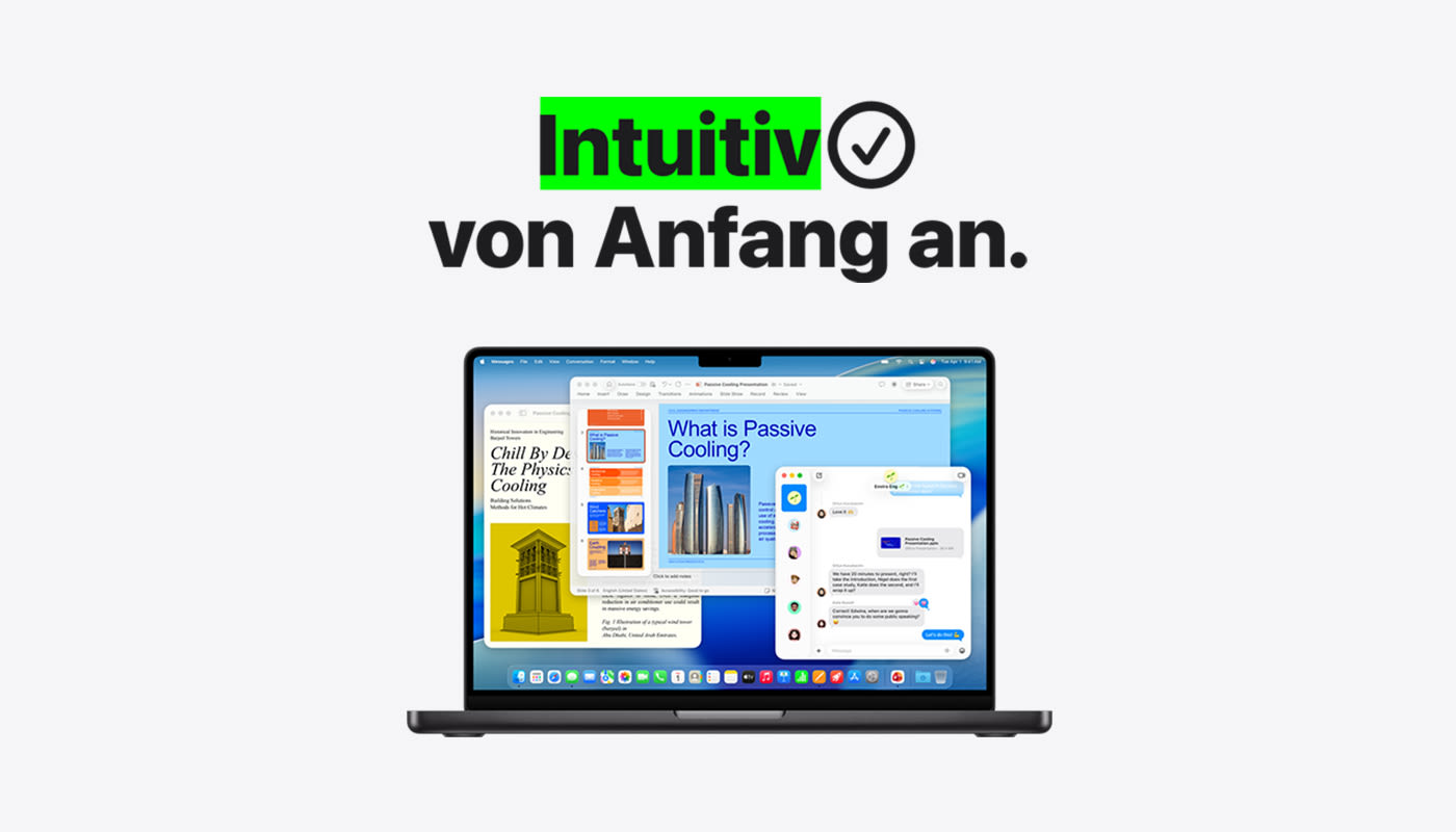 Leistungsstark. Sicher. Und entwickelt für Apple Intelligence. Mit dem Mac können Sie besser und nahtloser arbeiten als je zuvor.