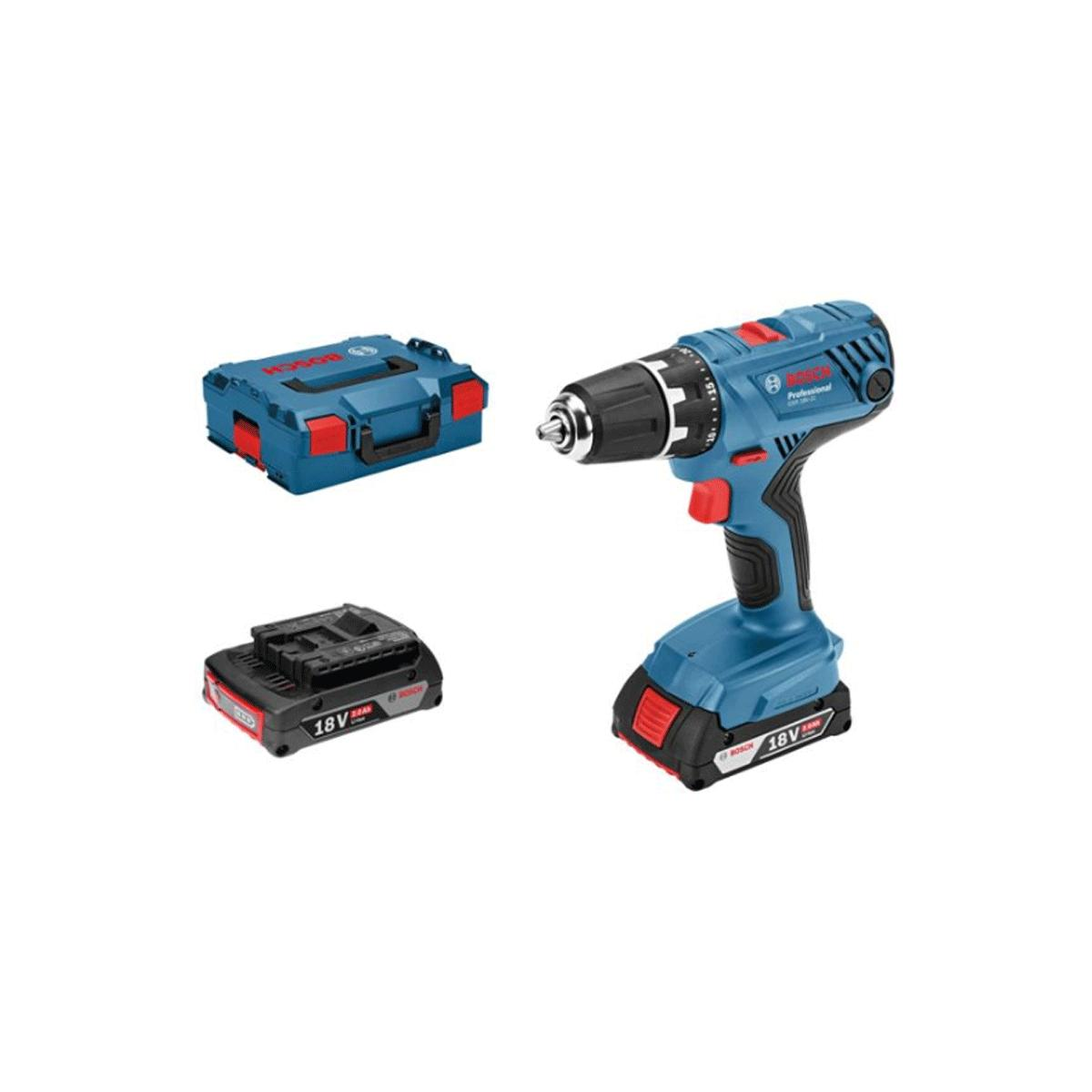 <ul><li>1x Bosch Akku-Bohrschrauber GSR 18V-21</li><li>1x Bosch Akku GBA 18V 2,0 Ah</li><li>1x Bosch Schnellladegerät GAL 18V-40</li><li>in L-Case</li></ul>