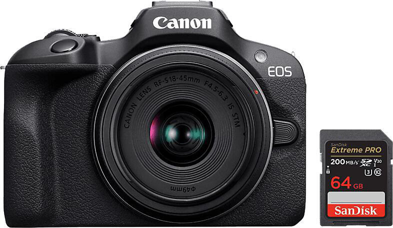 CANON EOS R100 Kit + SD Karte Systemkamera mit Objektiv 18-45 mm, 7,62 cm Display, WLAN