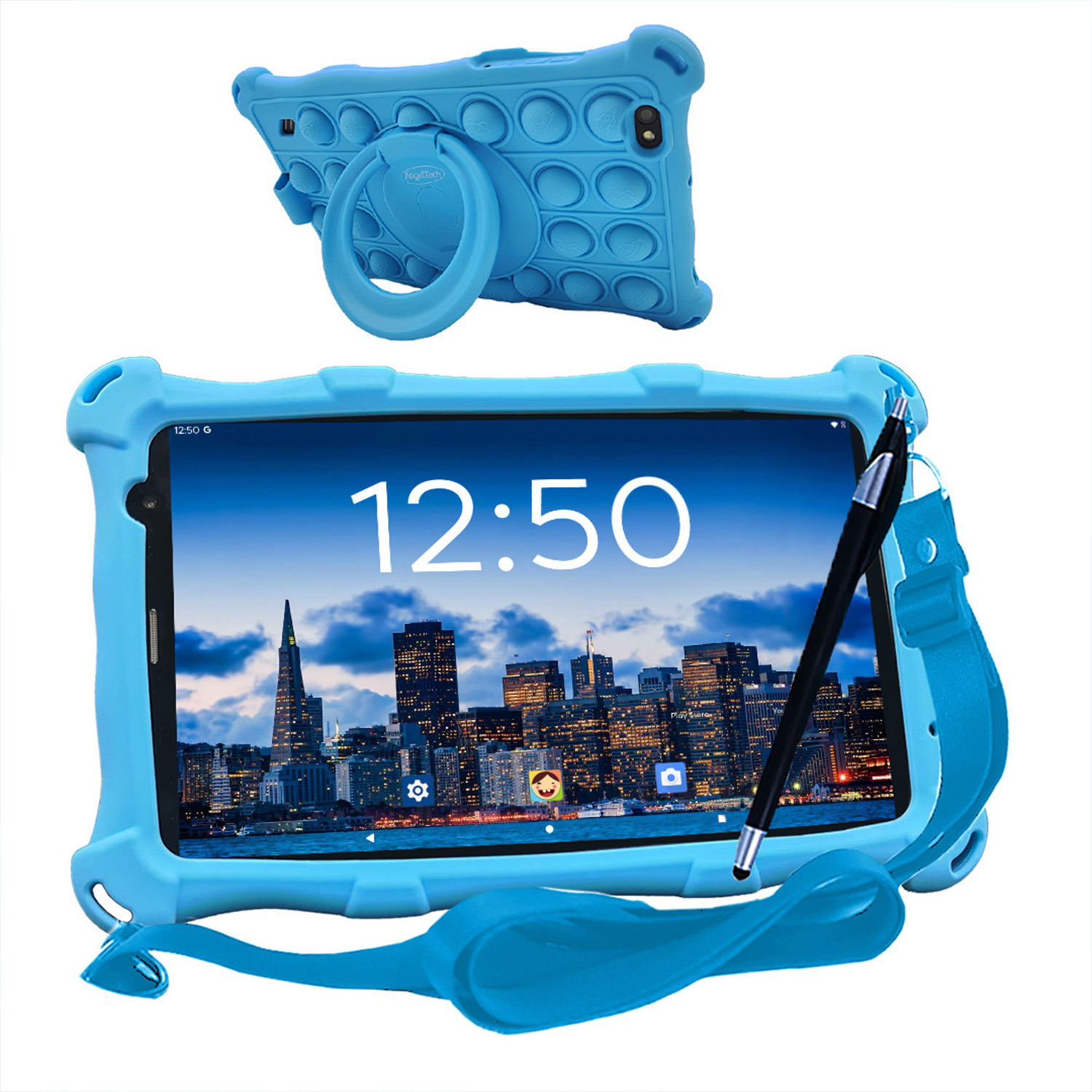 ANGELTECH PRO MAX, Kinder Tablet, 128 GB, 8 Zoll, Blau