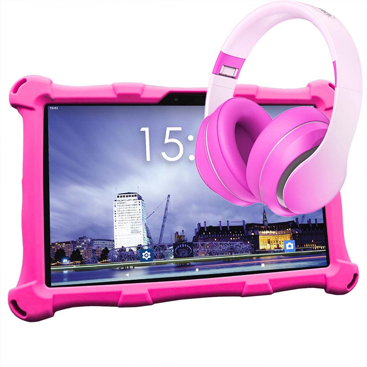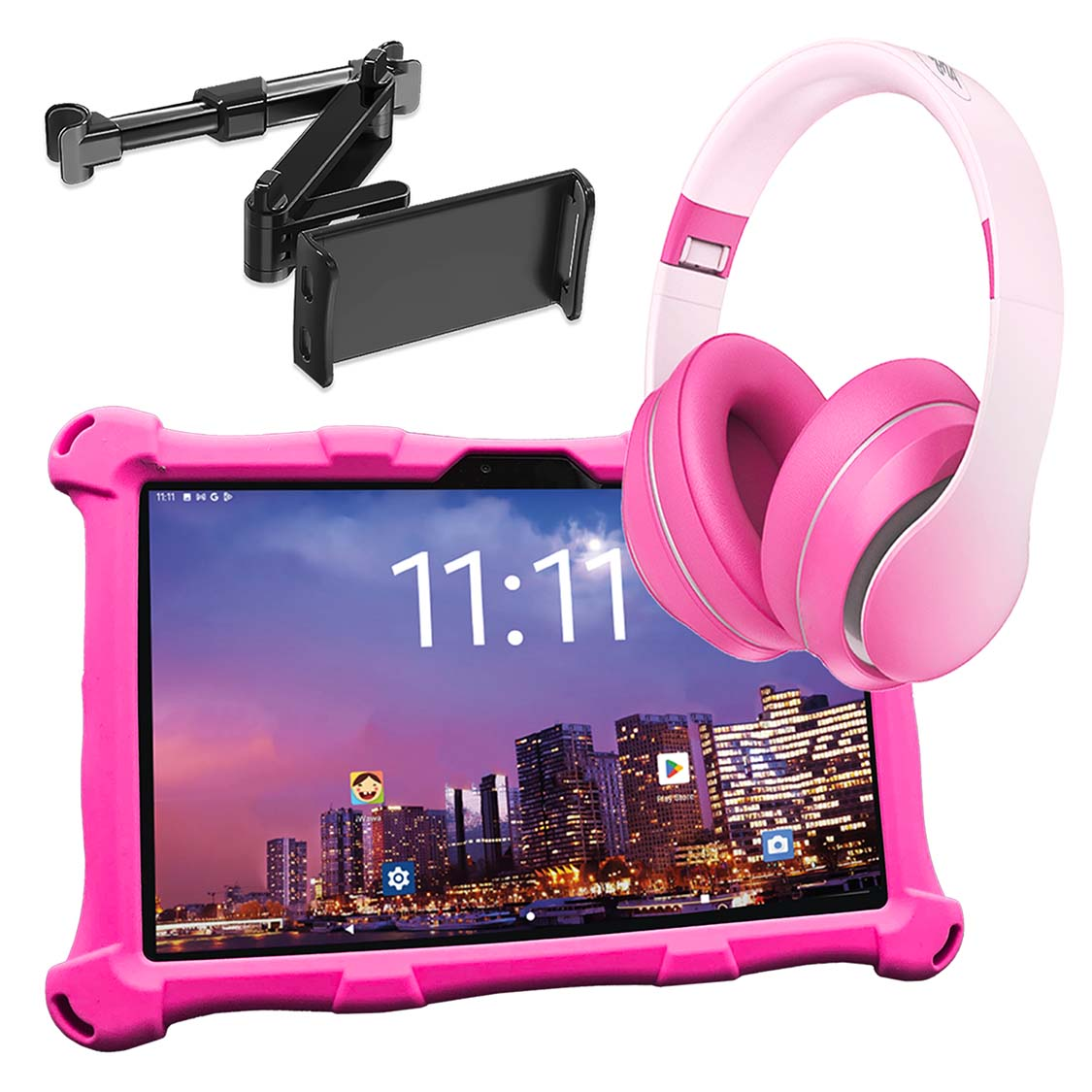 ANGELTECH XL PRO II mit Kopfhörer und Tablet-Halterung, Kinder Tablet, 192 GB, 10 Zoll, Rosa mit Kopfhörer und Tablet-Halterung