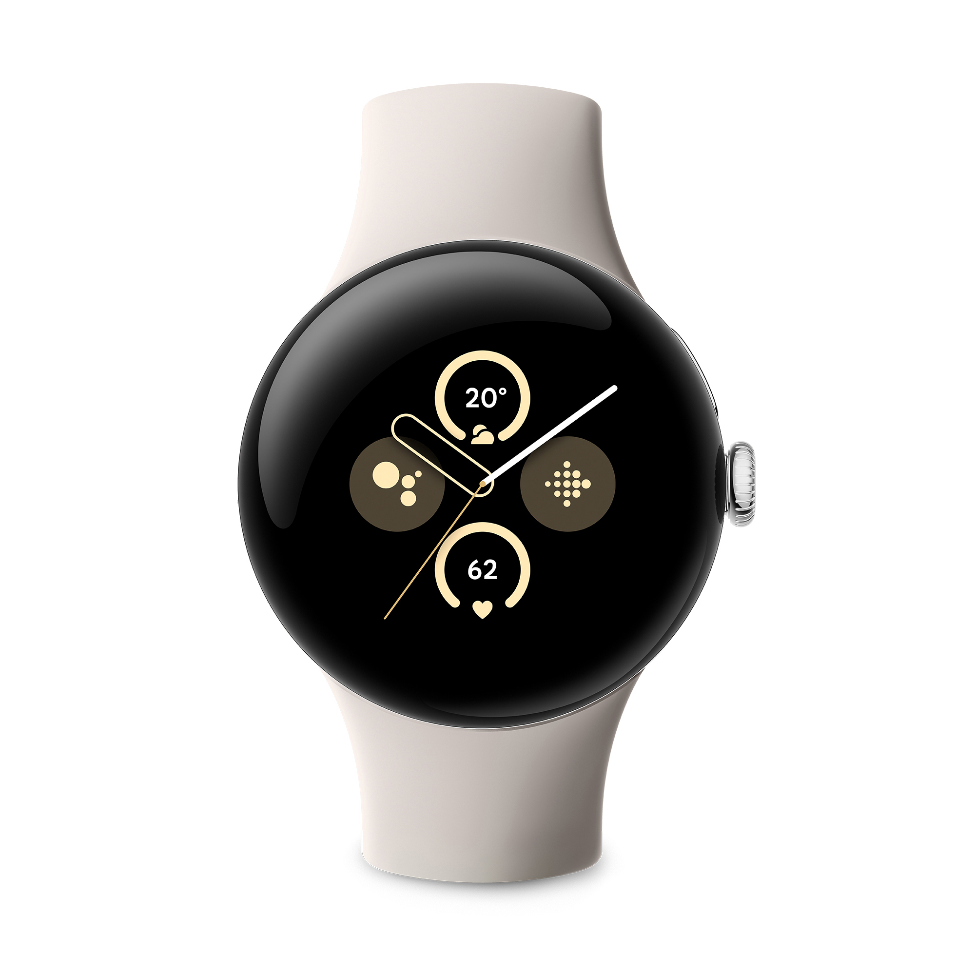GOOGLE Pixel Watch 2 (WiFi) Smartwatch Aluminium Fluorelastomer, 130–175 mm, 165–210 mm, Polished Silver/ Porcelain