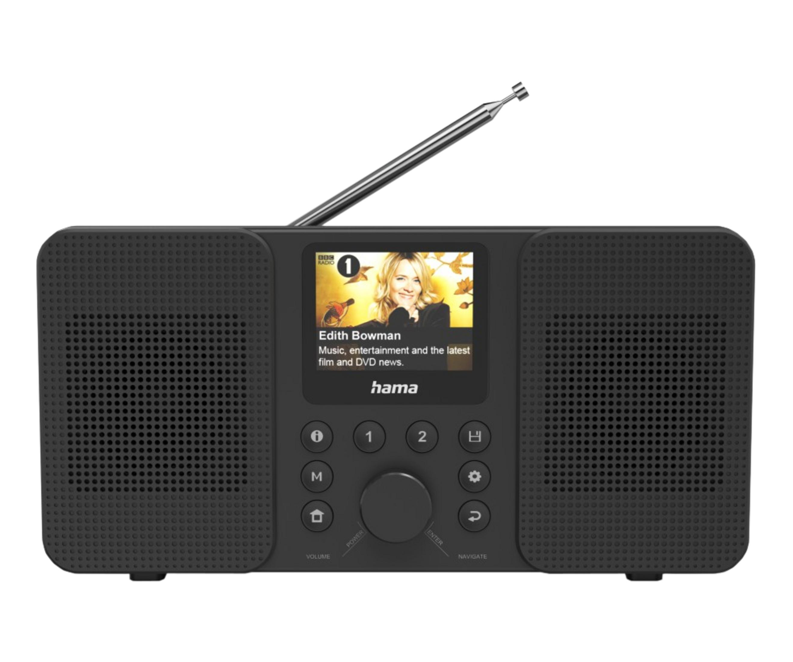 1× Hama DIT2105 HiFi-Tuner, 1× Fernbedienung, 1× DAB+/FM-Antenne, 1× Audio-Kabel (RCA), 1× Netzkabel