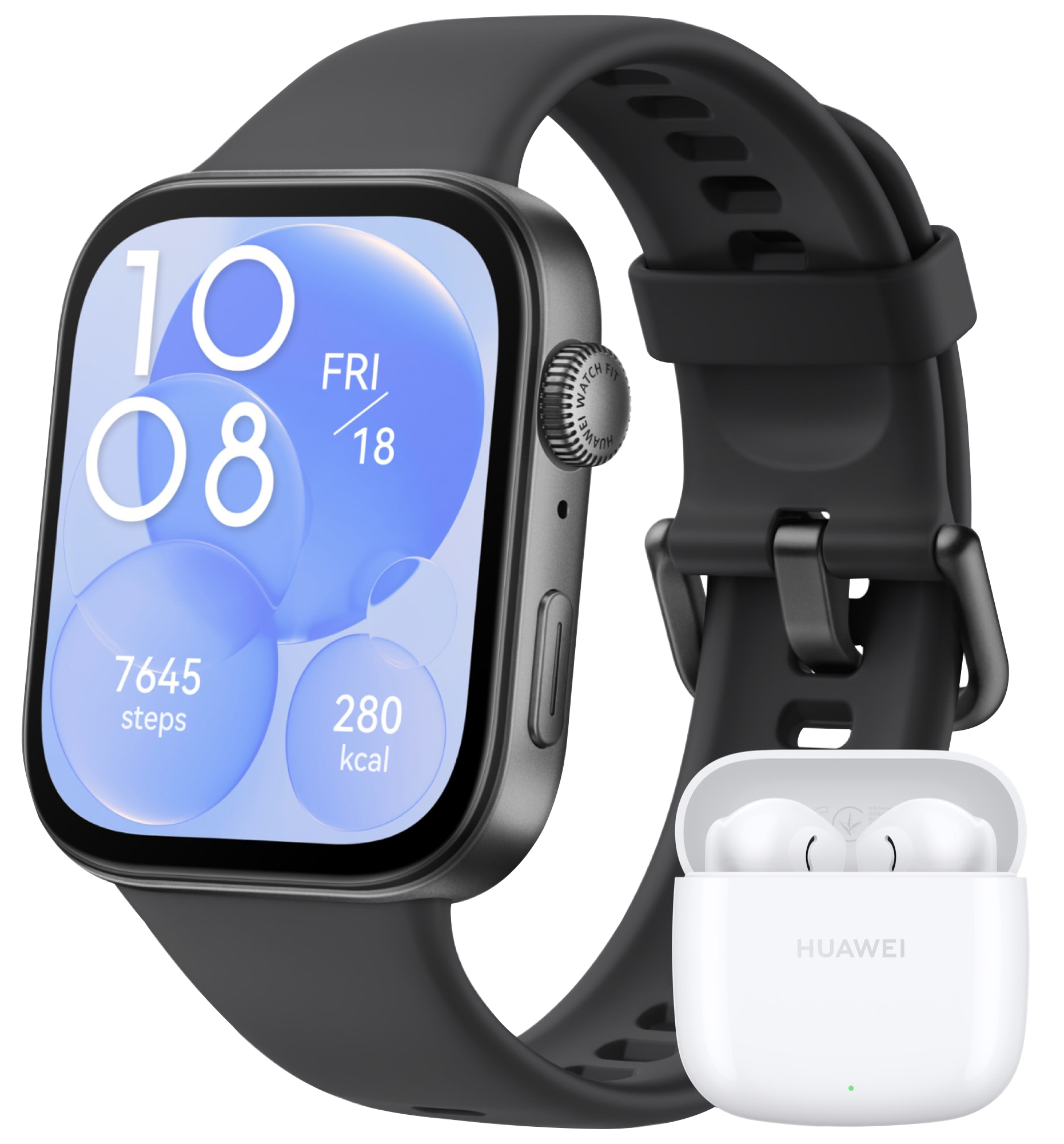 HUAWEI FIT 3 Black + Freebuds SE 2 (weiß) Smartwatches Aluminiumlegierung Fluorelastomer-Armband, 130-210 mm, Schwarz