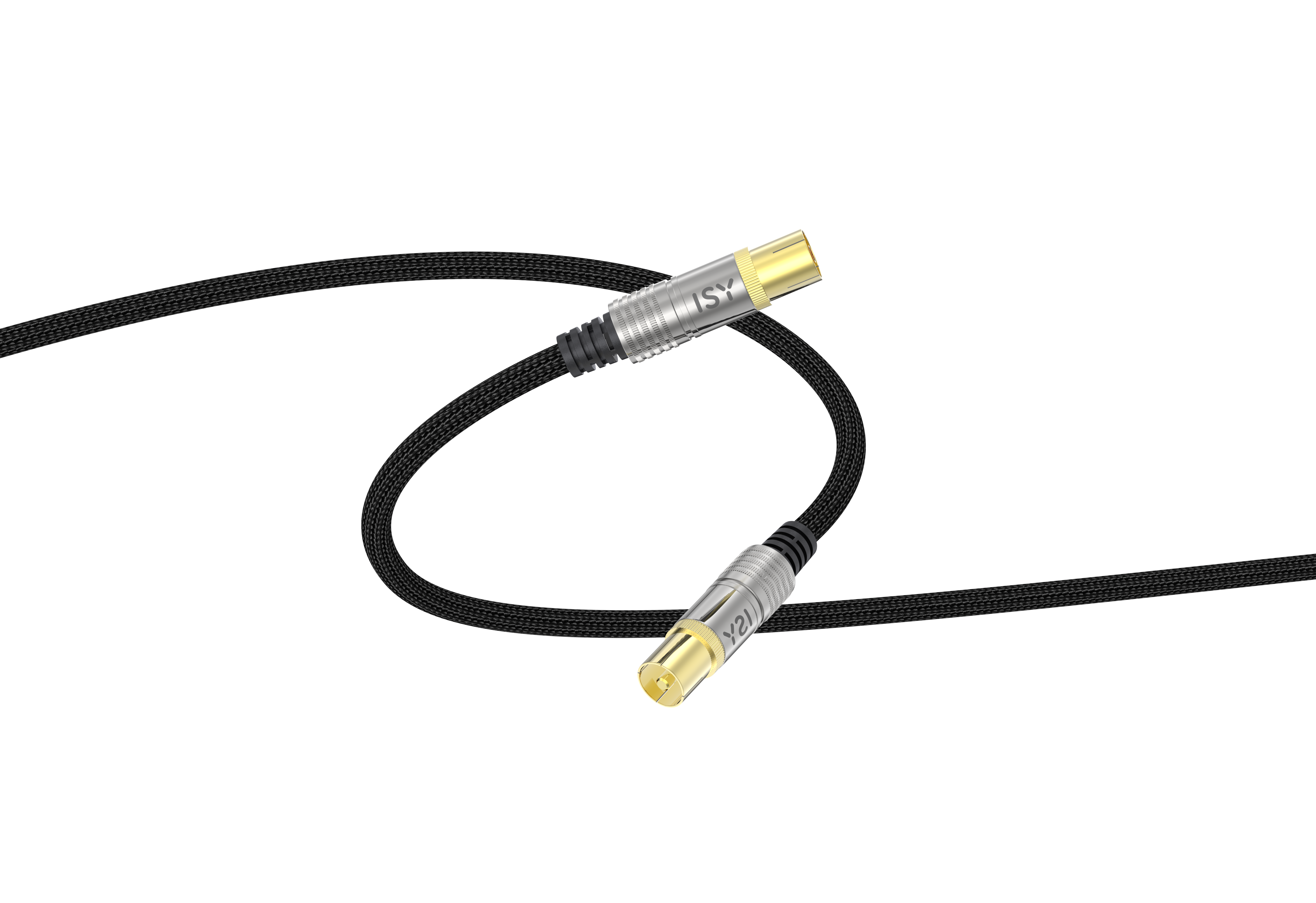 Koaxialstecker auf Koaxialbuchse, Impedanz: 120 dB (Maximal), 3 m Kabellänge, vergoldet, geflochtenes Kabel.