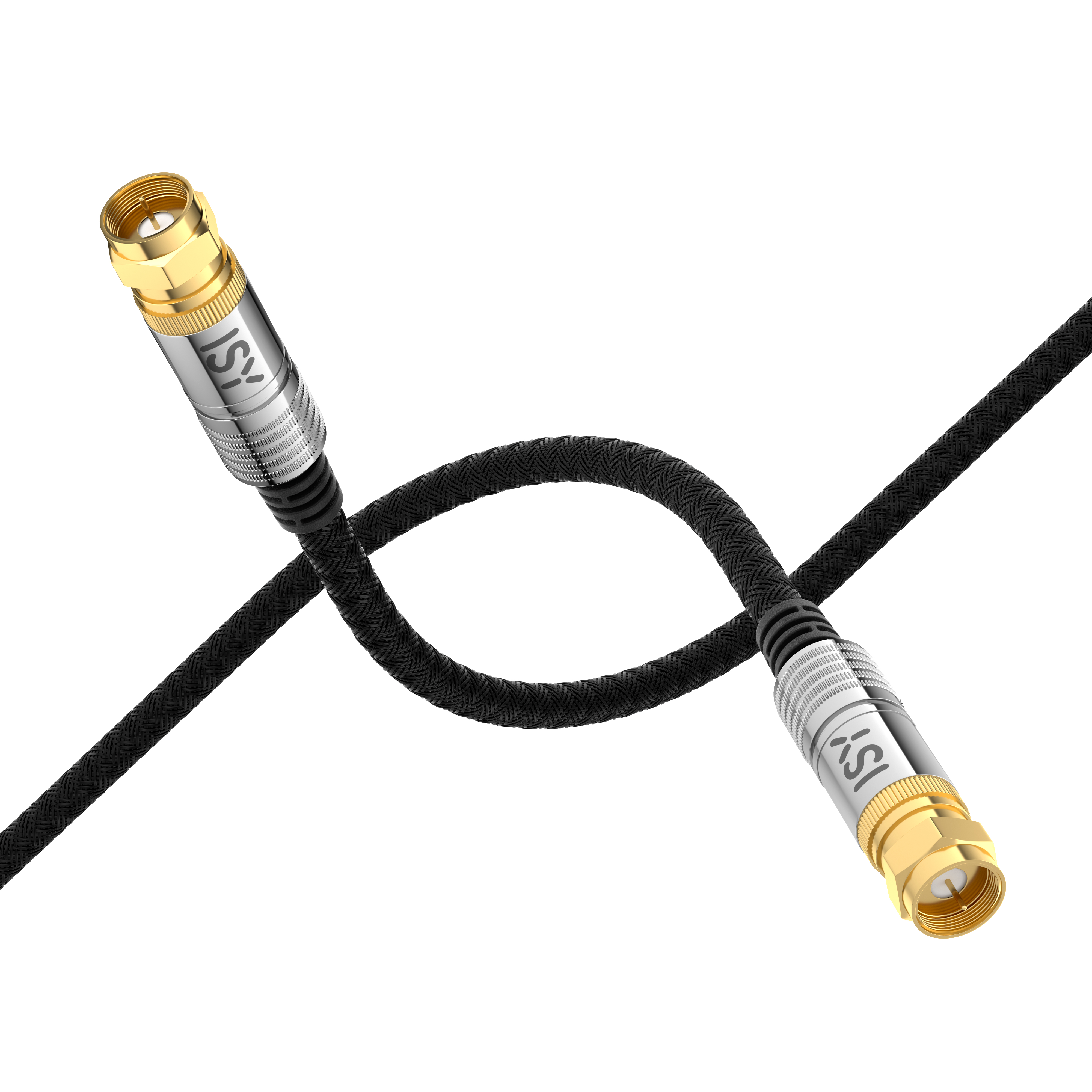 F-Typ Stecker auf F-Typ Stecker, Impedanz: 120 dB (max.), 1.5 m Kabellänge, vergoldet, geflochtenes Kabel.