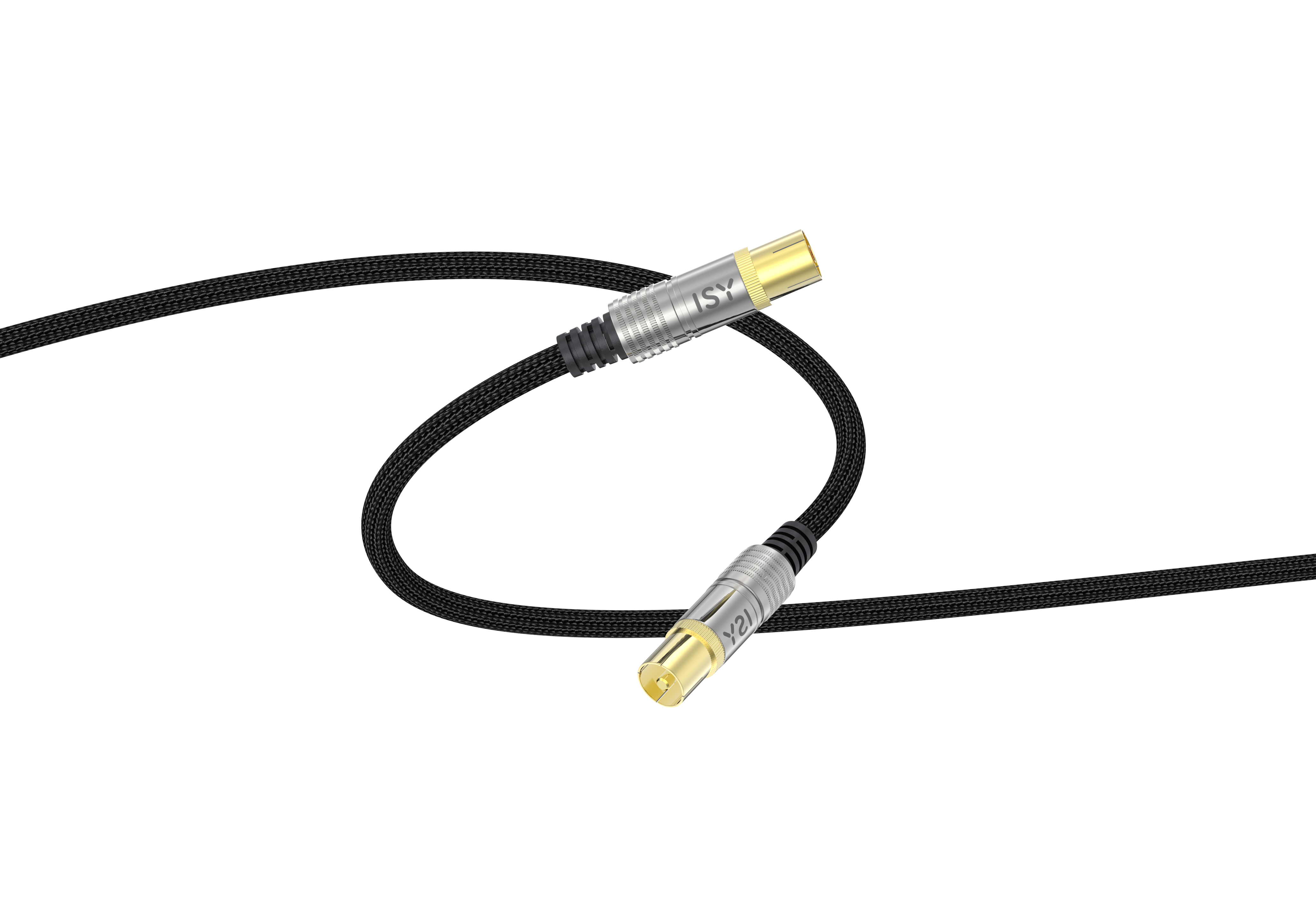 Koaxialstecker auf Koaxialbuchse, Impedanz: 120 dB (Maximal), 1.5 m Kabellänge. vergoldet, geflochtenes Kabel