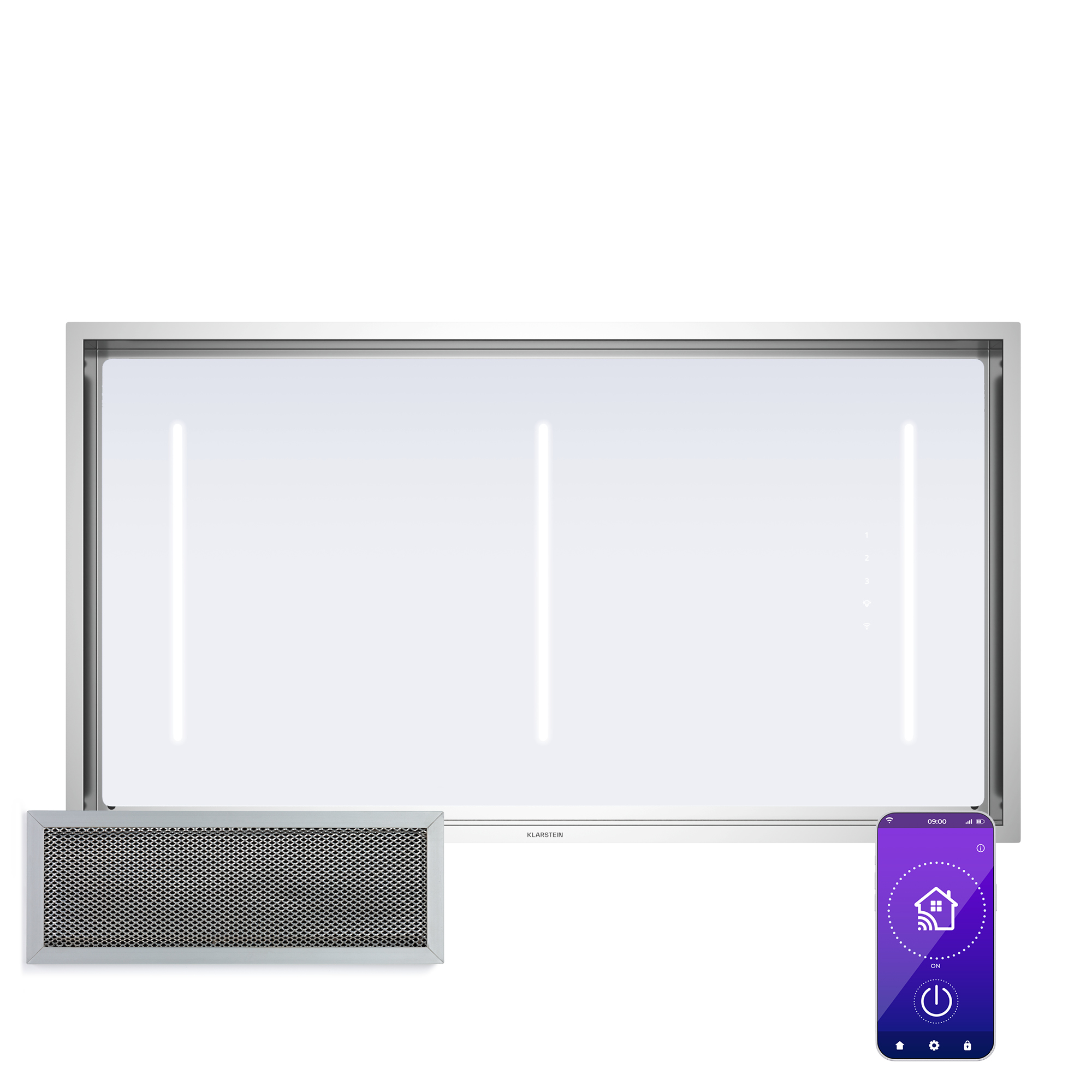 verfügbare LED-Farben: weiß, rot, grün, blau, gelb, lila, orange, türkis und gelbgrün niedriges Betriebsgeräusch: 52 / 68 dB auf niedrigster / höchster Leistungsstufeeinfache Umrüstung auf Umluftbetrieb möglich mit Hilfe zweier Aktivkohlefilter (Artikel 10030727, im Lieferumfang enthalten)komplettes Montage-Set mit Wandhalterungen, Dübeln und SchraubenLeistungsaufnahme: 230 W (bei eingeschalteter Beleuchtung)Stromversorgung: 220 - 240 V~ | 50/60 Hz