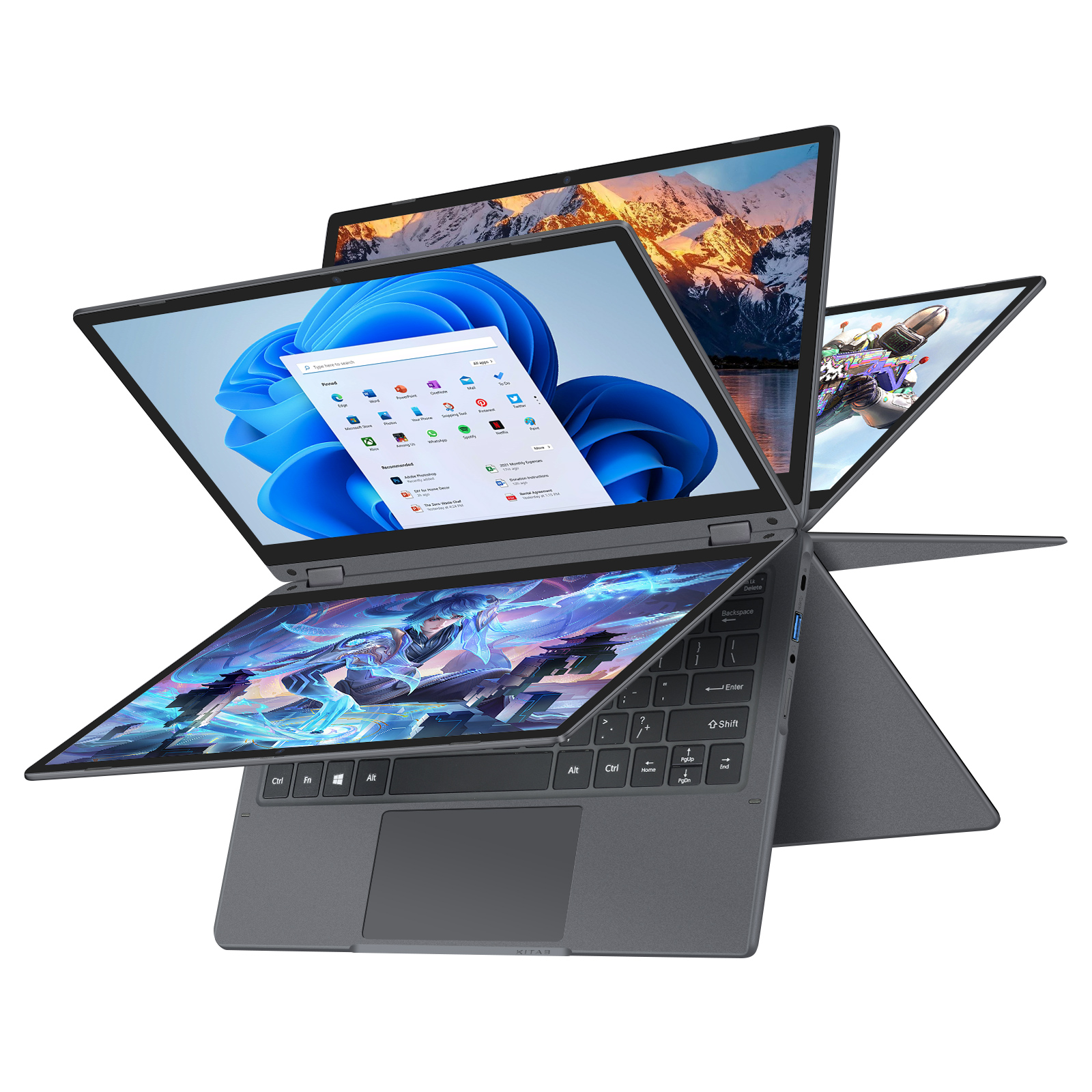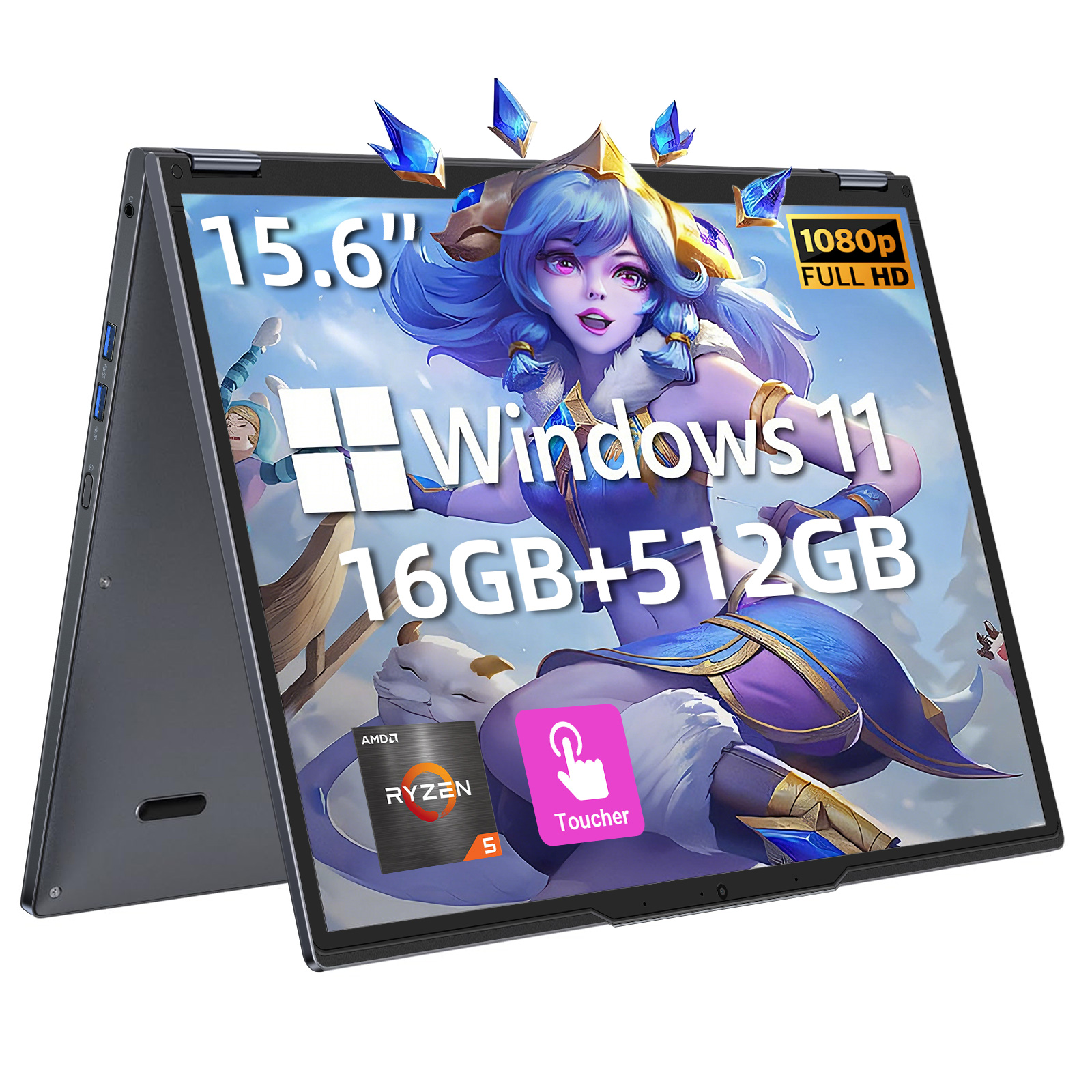 VANWIN 15.6 Zoll YOGA | Notebook | AMD Ryzen5 7430U, laptop, mit 15,6 Zoll Display Touchscreen, AMD Ryzen™ 5,Ryzen5 Prozessor, 16 GB RAM, 512 GB SSD, AMD Radeon™ Onboard Graphics, Grey, Windows