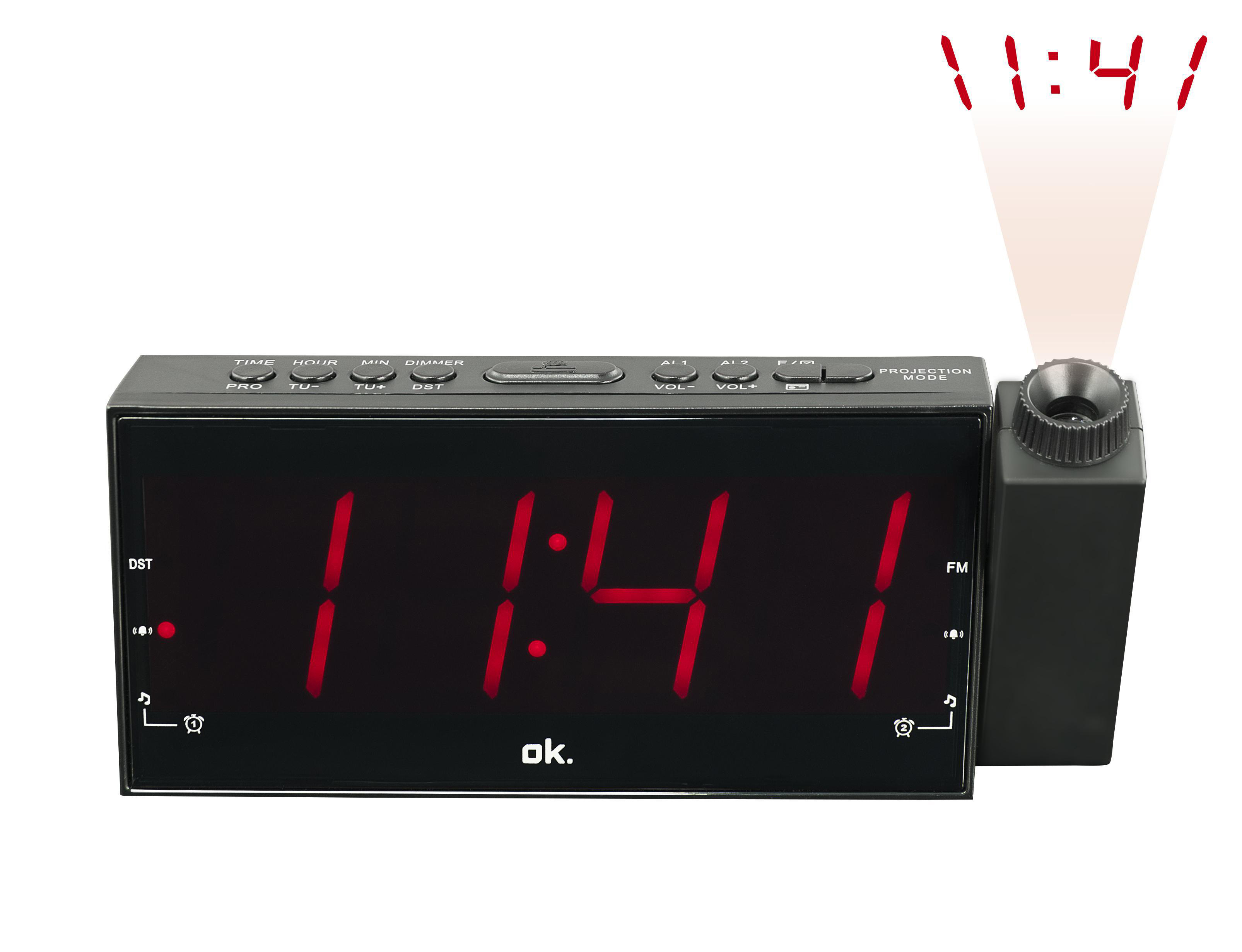 OK. OCR 161-PR Projektions-Uhrenradio, FM, AM, FM, Schwarz