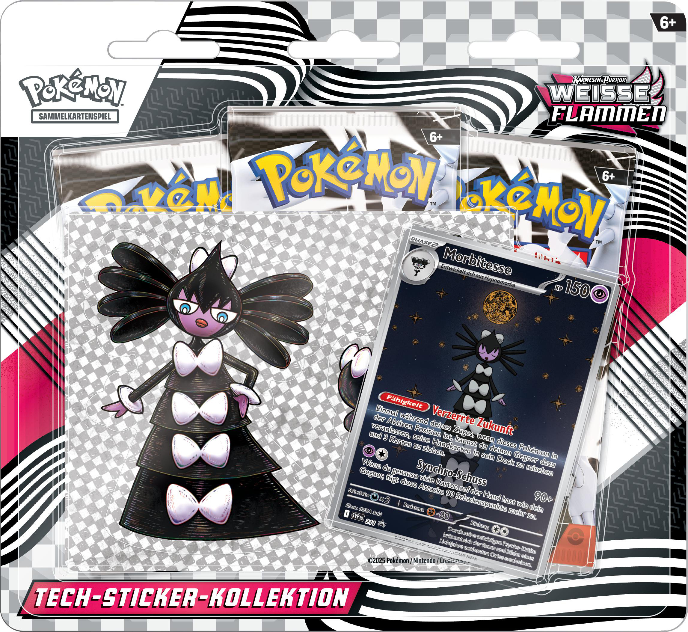 1 geprägte holografische Promokarte mit Psiana-ex,1 geprägte holografische Promokarte mit Nachtara-ex,1 Figur mit Psiana und Nachtara,1 Pin mit Psiana und Nachtara,65 Kartenhüllen mit Psiana und Nachtara,11 Boosterpacks der Pokémon-Sammelkartenspiel-Erweiterung Karmesin & Purpur - Prismatische Entwicklungen,1 Code-Karte für Pokémon-Sammelkartenspiel-Live