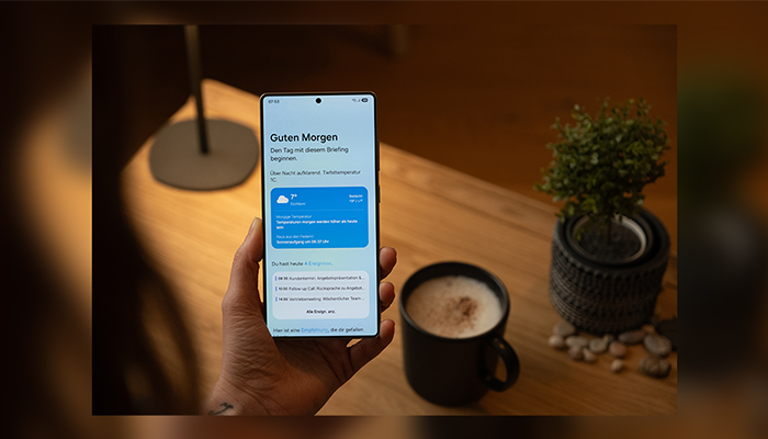 Erhalten Sie personalisierte Briefings³, die Sie den ganzen Tag lang organisiert, informiert und im Einklang mit Ihrem Zeitplan halten.