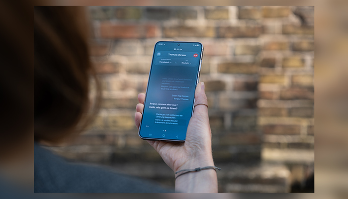 Dank der Live-Übersetzung können Sie sich Ihre Telefongespräche und Chats jetzt in Echtzeit übersetzen lassen⁶ – zum Beispiel, wenn Sie auf einer Geschäftsreise sind und die Sprache nicht verstehen. Sie können sogar in Ihrer Sprache antworten, da auch dies automatisch übersetzt wird.