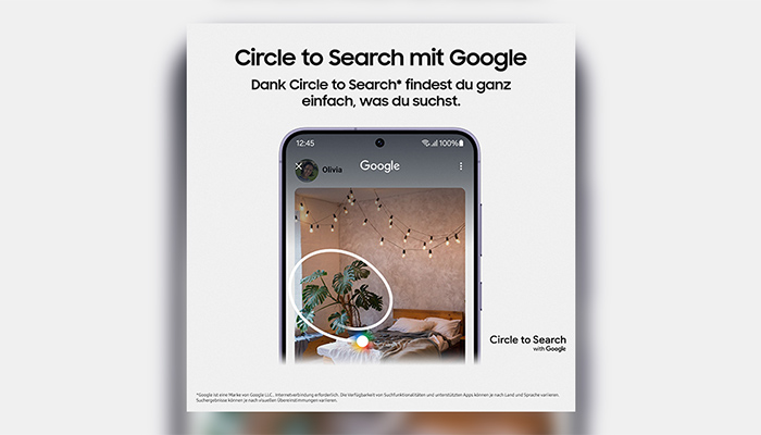 ⁵ Circle to Search ist eine Marke von Google LLC. Internetverbindung erforderlich. Die Verfügbarkeit von Suchfunktionalitäten und unterstützten Apps können je nach Land und Sprache variieren. Suchergebnisse können je nach visuellen Übereinstimmungen variieren.