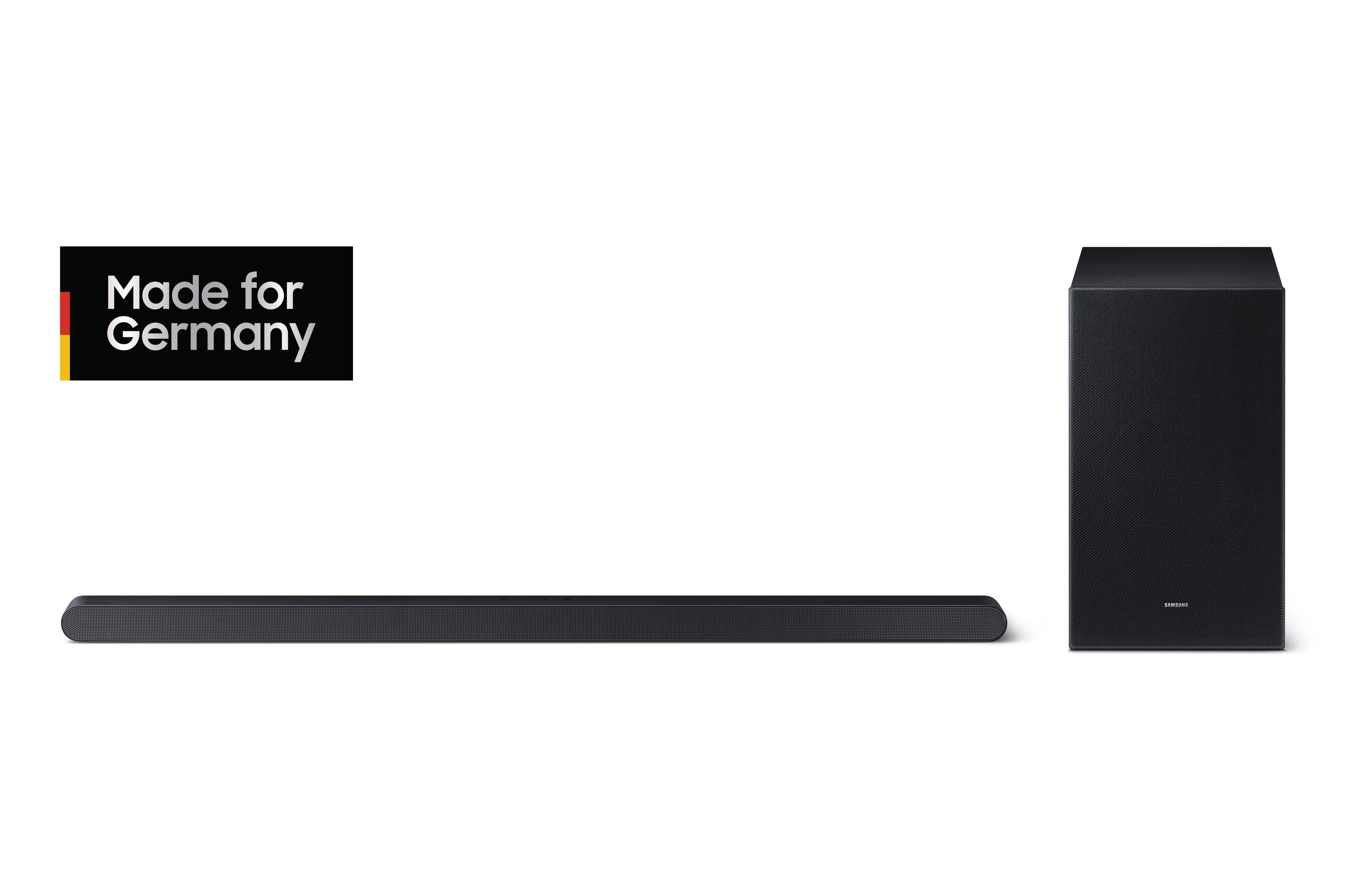 In der SAMSUNG Soundbar A-Series bietet der bekannte Elektronikhersteller aus Korea eine besonders breite Produktpalette an. Die Modelle sind immer mit zwei Kanälen plus Subwoofer ausgestattet und können im Zusammenspiel mit verschiedenen TV-Geräten von SAMSUNG aus dem MediaMarkt Onlineshop über eine gemeinsame Fernbedienung gesteuert werden. Die Unterschiede liegen in der Leistungsfähigkeit, die Bandbreite reicht von 270 Watt beim Soundriegel und 190 Watt bei der Bassbox für kleine und mittlere Räume bis hin zu 430 und 250 Watt für großzügige, offene Wohnbereiche.