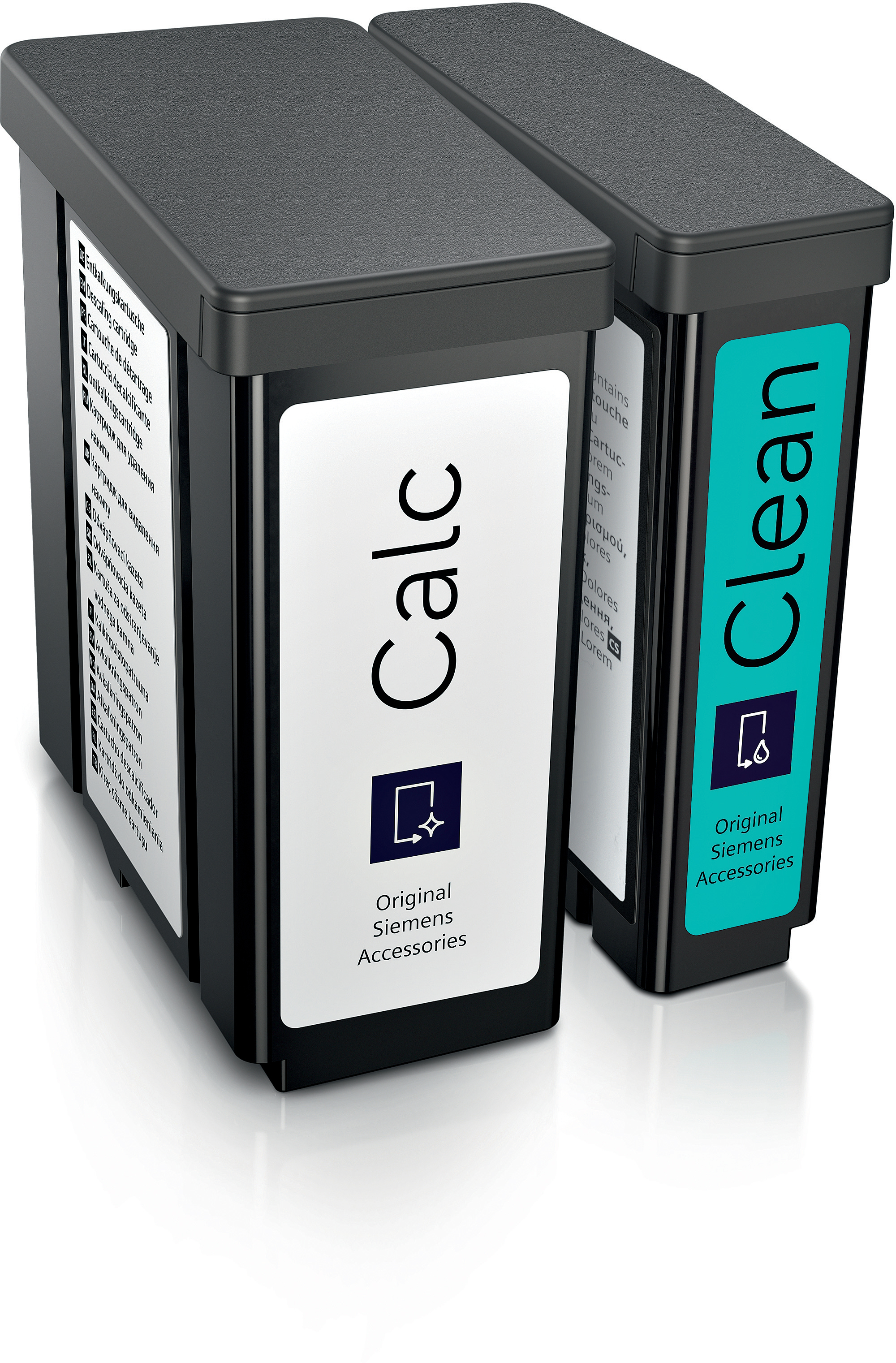 1 Reinigungskartusche, 1 Entkalkerkartusche