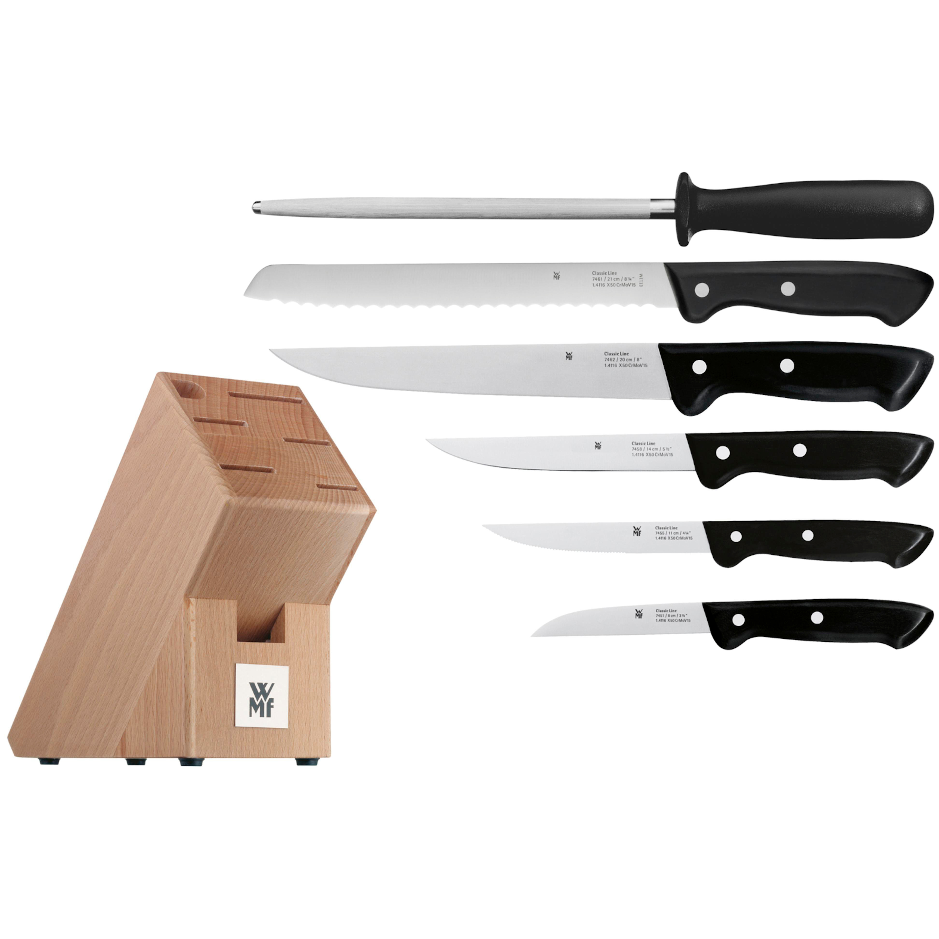 WMF Classic Line Messer-Set 7-teilig, Buchenholz Messerblock