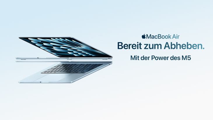 ⁸ Die Tests wurden von Apple im Januar 2026 durchgeführt mit Prototypen von 13" MacBook Air Systemen mit Apple M5, 10Core CPU und 8Core GPU sowie mit Prototypen von 15" MacBook Air Systemen mit Apple M5, 10Core CPU und 10Core GPU, alle konfiguriert mit 16 GB RAM und 512 GB SSD. Die Batterielaufzeit für drahtloses Surfen im Web wurde auf 25 gängigen Websites mit einer WLAN Verbindung getestet. Die Batterielaufzeit beim Videostreaming wurde mit 1080p Inhalten in Safari und einer WLAN Verbindung getestet. Alle Systeme wurden mit einer Bildschirmhelligkeit von Stufe 8 und ausgeschalteter Tastatur-Hintergrundbeleuchtung getestet. Die Batterielaufzeit variiert abhängig von Verwendung und Konfiguration. Weitere Infos unter apple.com/de/batteries.