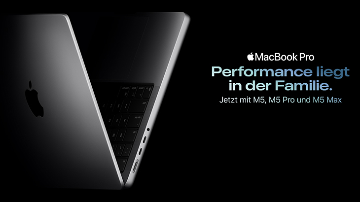 ⁶ Die Tests wurden von Apple im Januar und Februar 2026 durchgeführt mit Prototypen von 14" MacBook Pro Systemen mit Apple M5 Max, 18Core CPU, 32Core GPU, 36 GB gemeinsamem Arbeitsspeicher und 2 TB SSD, sowie mit Prototypen von 14" MacBook Pro Systemen mit Apple M5 Pro, 18Core CPU, 20Core GPU, 24 GB gemeinsamem Arbeitsspeicher und 2 TB SSD. Die Batterielaufzeit für drahtloses Surfen im Web wurde auf 25 gängigen Websites mit einer WLAN Verbindung getestet. Die Batterielaufzeit beim Videostreaming wurde mit 1080p Inhalten in Safari und einer WLAN Verbindung getestet. Die Bildschirmhelligkeit war auf Stufe 8 gesetzt und die Tastatur-Hintergrundbeleuchtung war ausgeschaltet. Die Batterielaufzeit variiert abhängig von Verwendung und Konfiguration. Weitere Infos unter apple.com/de/batteries.