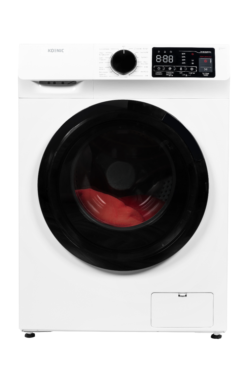 Weitere Highlights der Maschine sind eine Dampffunktion, Nachlegefunktion und eine Schaumerkennung (falls sich zu viel Schaum bildet). Besonders praktisch ist außerdem das Programm zur Trommelreinigung bei 90 Grad. Über den Drehregler und die Tasten stellst du die Waschprogramme ein. Das verbaute LC-Display zeigt die Restlaufzeit des eingestellten Programms. Auf 100 Waschzyklen verbraucht die KOENIC-Waschmaschine sparsame 47 kWh Strom. Der Wasserverbrauch beträgt 48 Liter pro Waschgang – das ist verhältnismäßig viel.