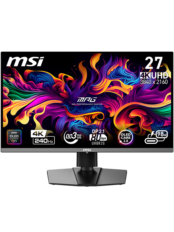 1x Kopfhörerausgang, 2x HDMI™ 2.1 (UHD@240Hz), DisplayPort 2.1 (UHBR20), 1x USB Typ-C (98W PD), 1x USB Typ-B, 2x USB Typ-A, 5-Wege Joystick Navigation, Kensington lock