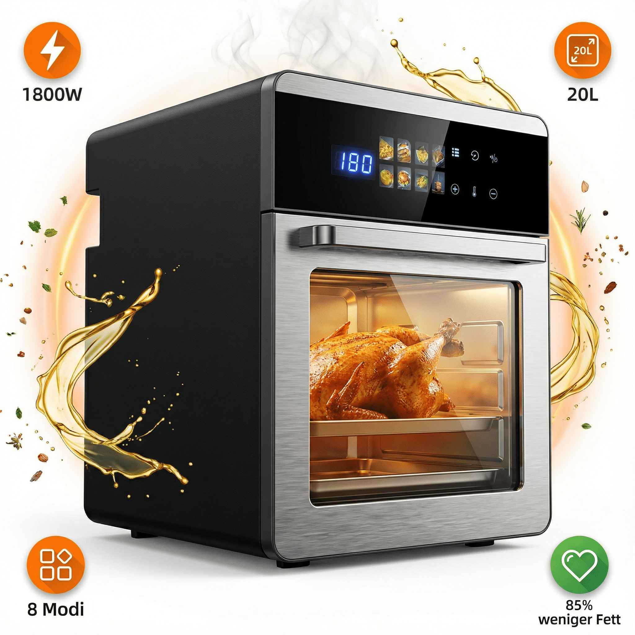 DEBUY 20L 1800W Edelstahl 8-Modi Minibackofen