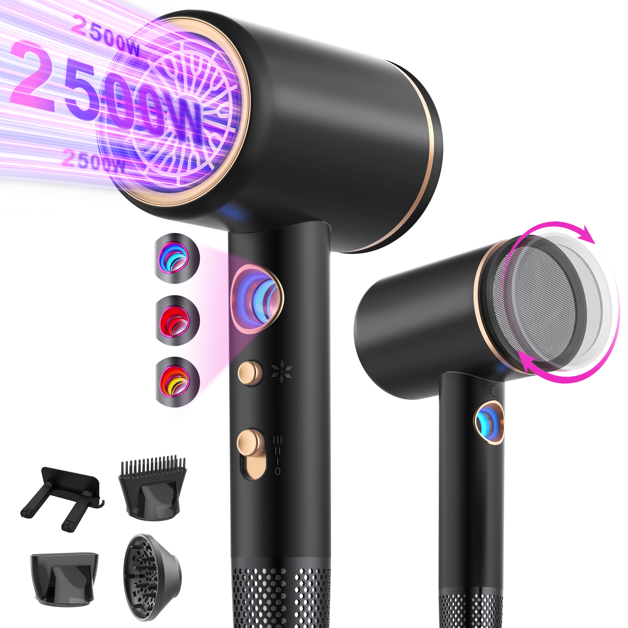 GRUNDIG HD 7081 Haartrockner Schwarz/Rosegold (2100 Watt)