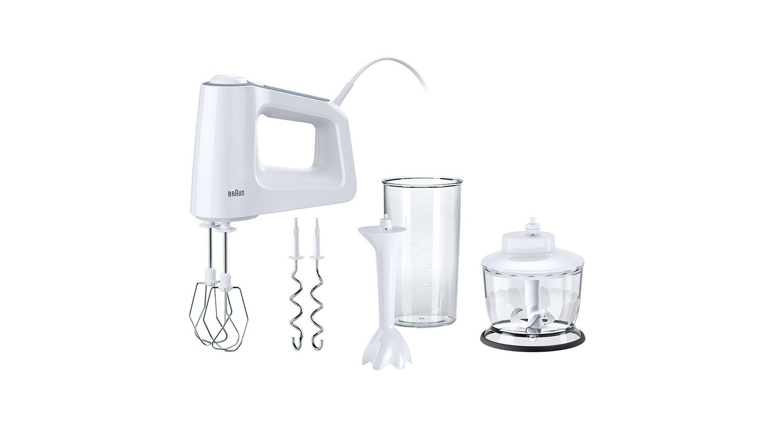 BRAUN MultiMix 3 HM 3135 Handmixer Weiß (500 Watt, 500 ml Zerkleinerer, 600 ml Mix- und Messbecher l)