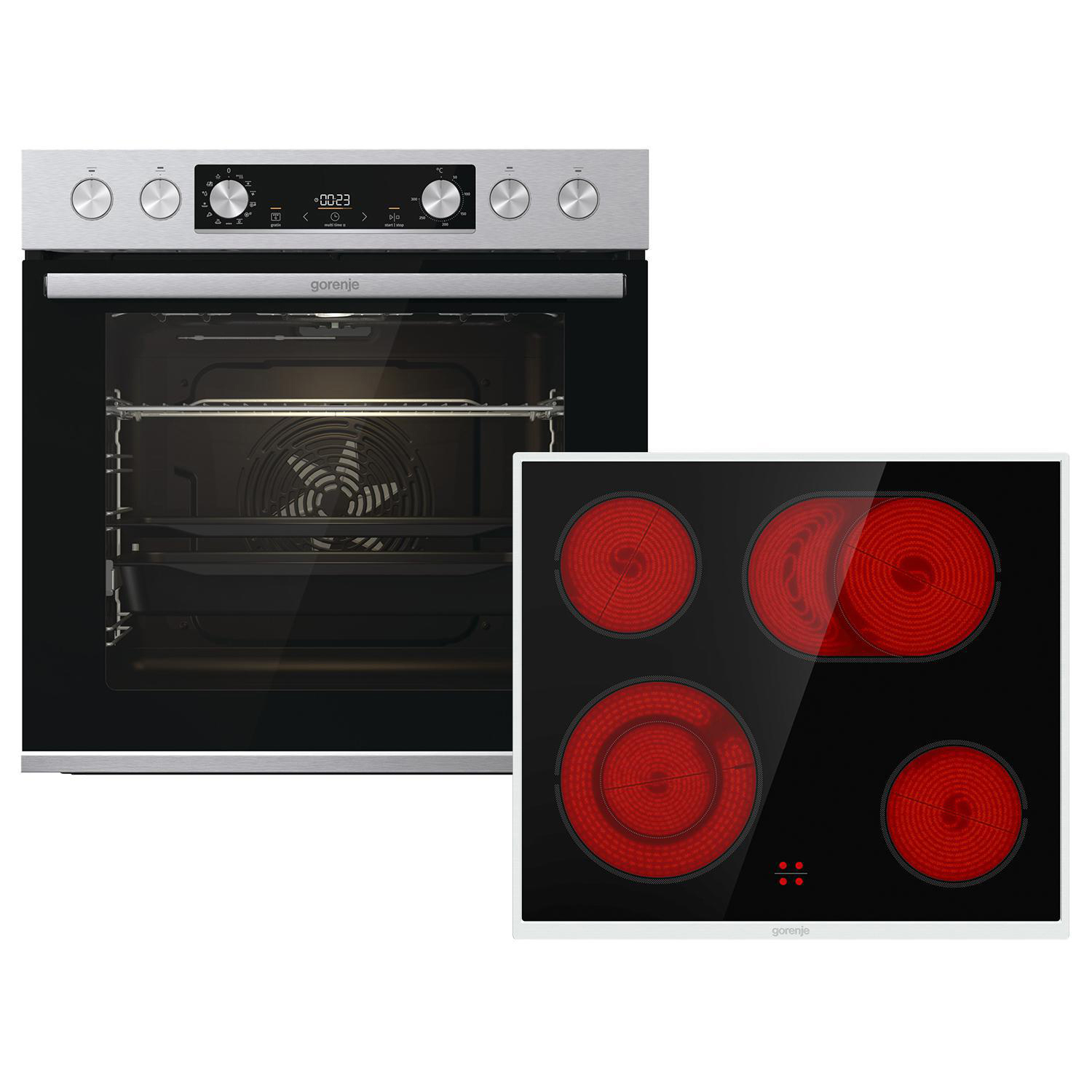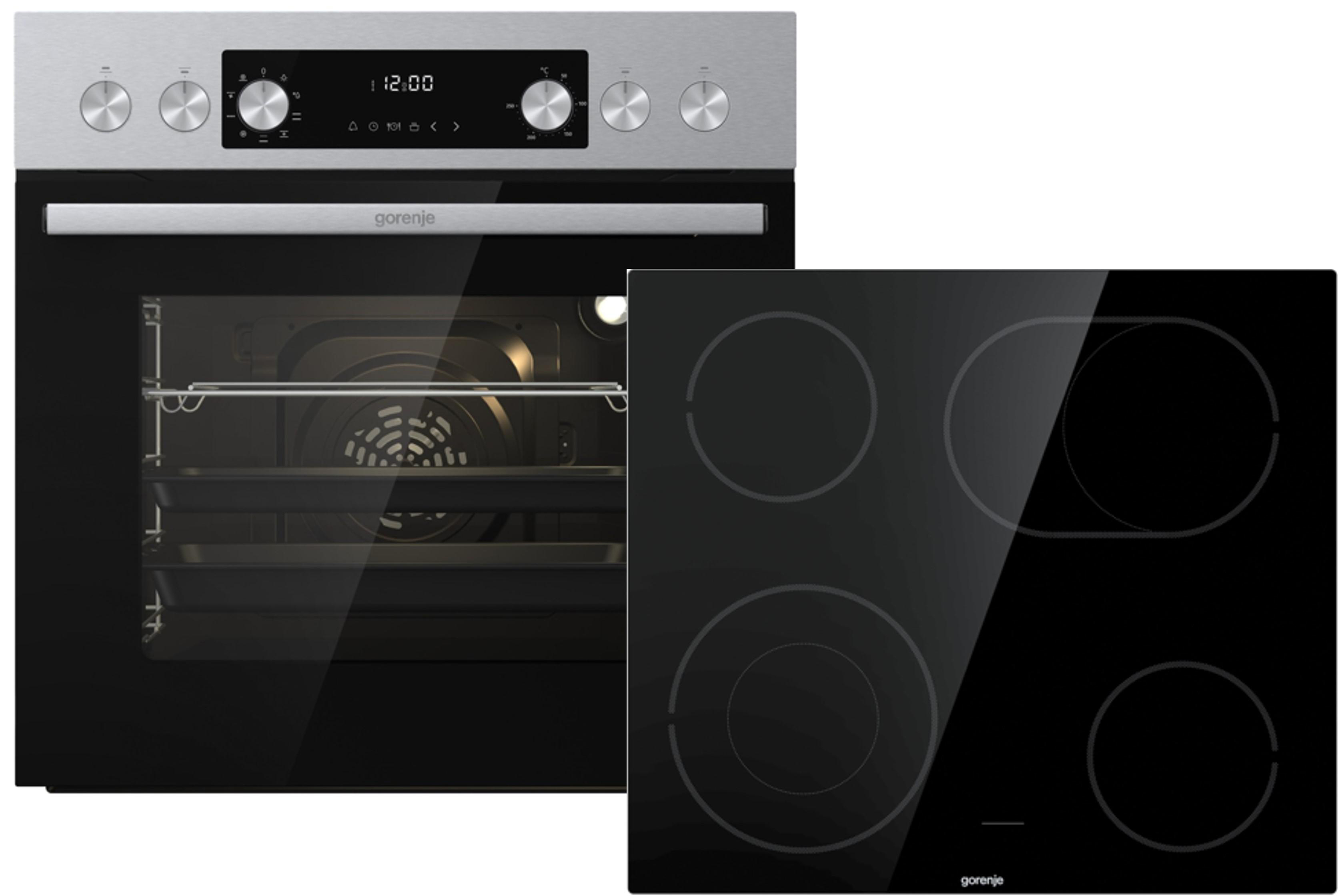 GORENJE STEEL SET 4 (BCS6737E06X+ECD634X), Einbauherdset (Glaskeramik-Kochfeld, A, 77 l)