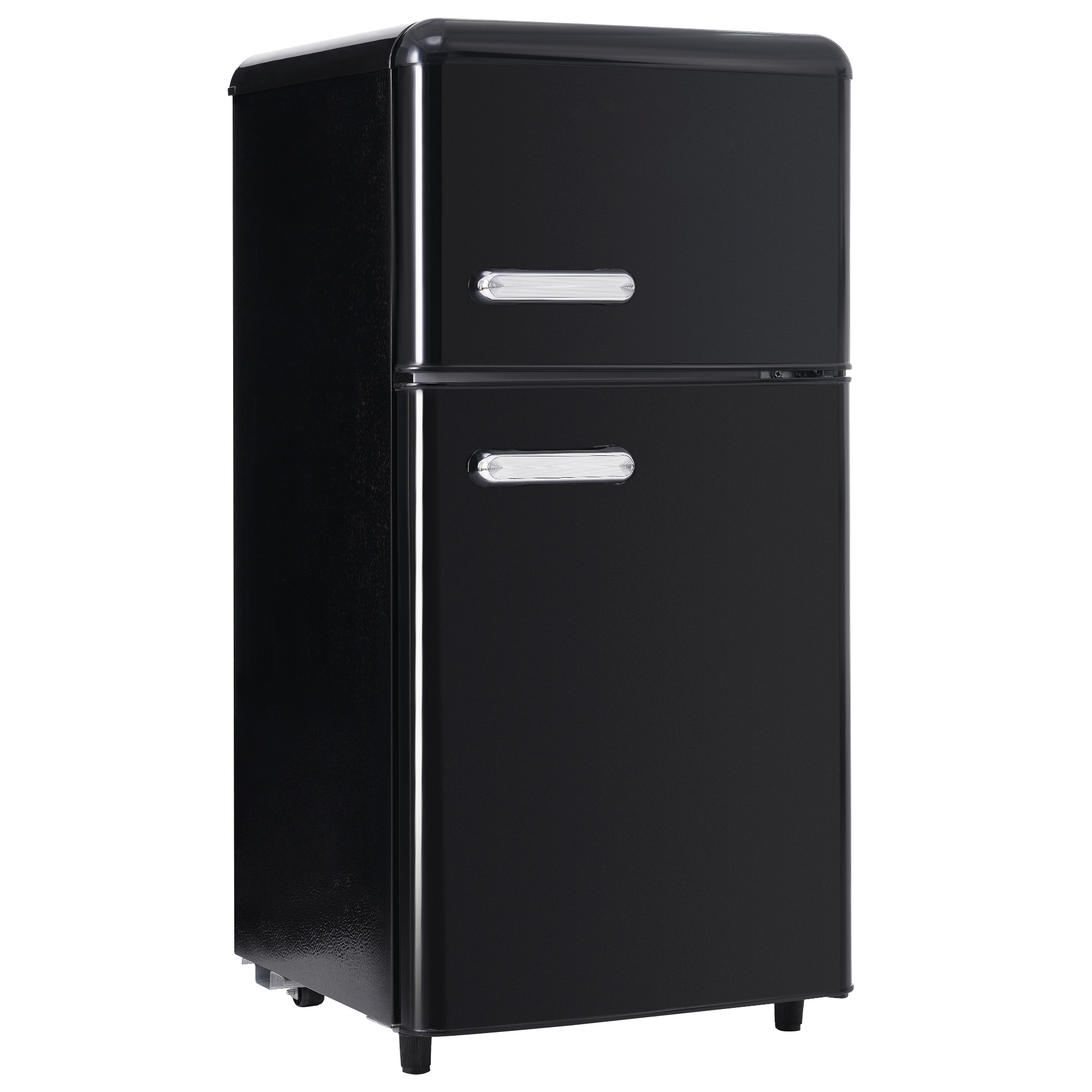 KITTECH Retro-Kühlschrank, Doppeltür-Design, 72L Volumen Kühlschrank (E, 91 cm hoch, Schwarz)