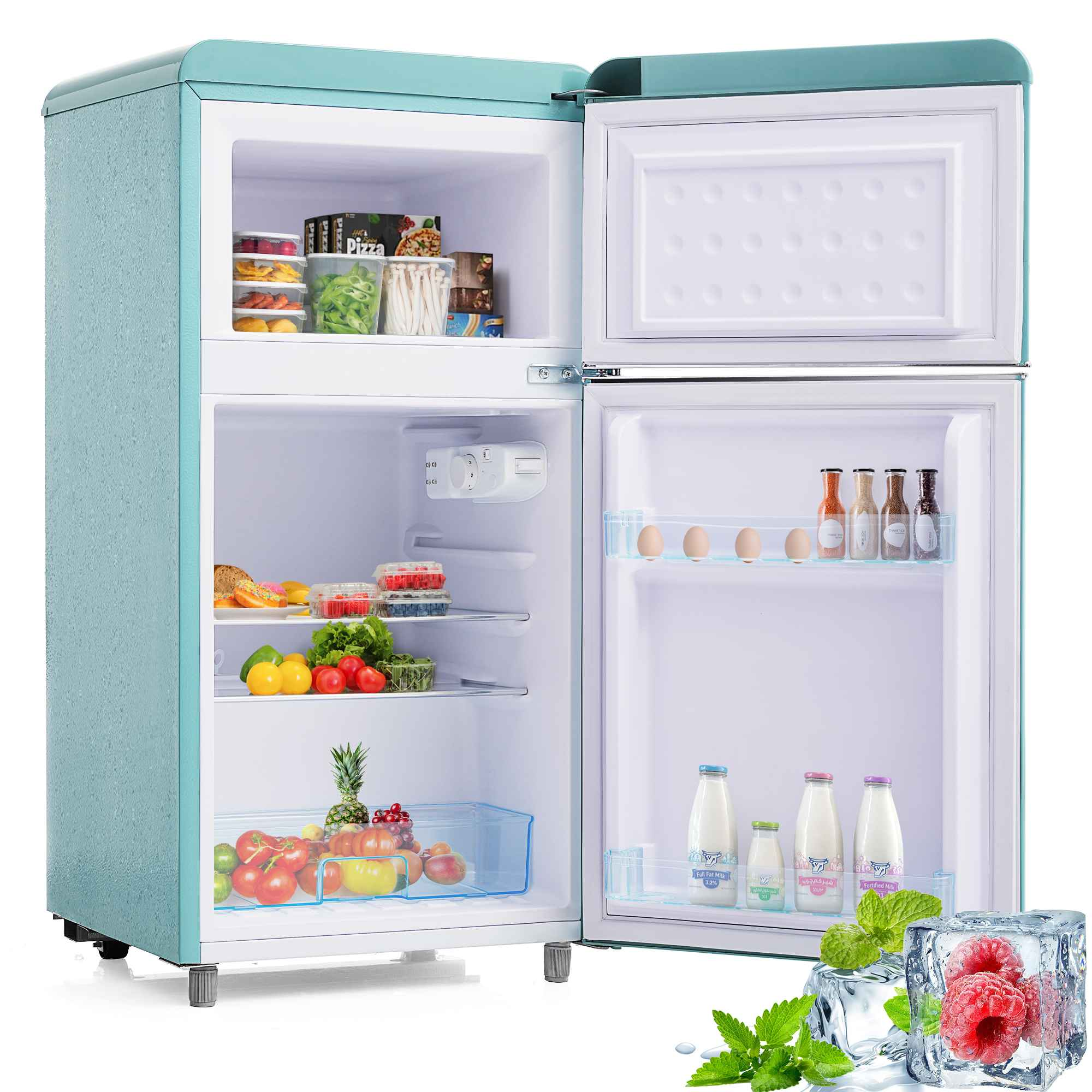 KITTECH Retro-Kühlschrank, Doppeltür-Design, 72L Volumen Kühlschrank (E, 91 cm hoch, Hellblau)