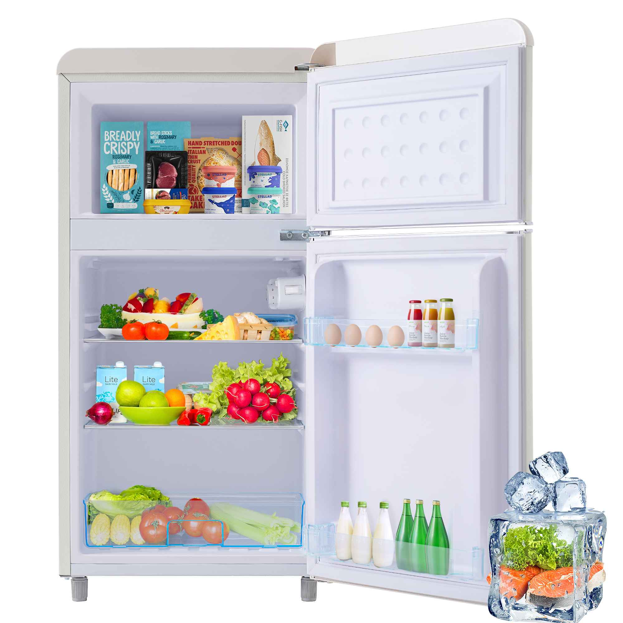 KITTECH Retro-Kühlschrank, Doppeltür-Design, 72L Volumen Kühlschrank (E, 91 cm hoch, Weiß)