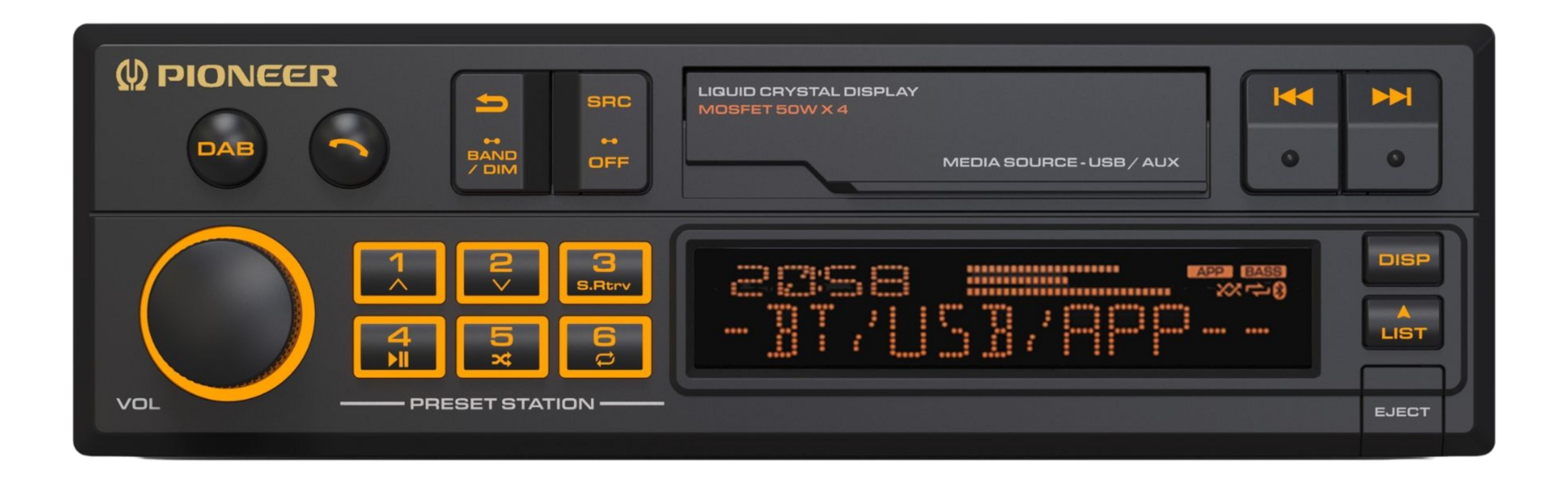 1x AUX In (Front), 1x USB (Front), 3x Vorverstärkerausgang