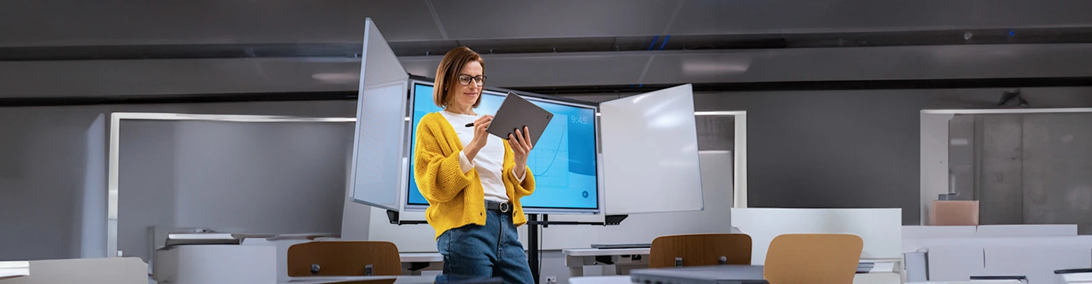 Das digitale Klassenzimmer eröffnet immense Möglichkeiten – für Schüler ebenso wie für Lehrkräfte. Personalisierter Unterricht, jederzeit zugängliche Lernplattformen für individuelle Lernniveaus bis zum digitalisierten Sportunterricht – alles ist möglich. Steigen Sie jetzt ein in die digitale Zukunft – mit Technik, Software und Systemen von MediaMarktSaturn Business. Wir zeigen Ihnen, wie Ihr Klassenzimmer der Zukunft aussehen kann, welche Vorteile es für alle mitbringt und wie Sie es in Ihre bestehende Infrastruktur integrieren können. Als zuverlässiger Partner vor Ort unterstützen wir Sie bei der Auswahl von interaktiven und vernetzten Lehrmaterialien, die sich optimal an den Bedürfnissen von Lernenden und Lehrenden orientieren. Unsere Geschäftskundenberater entwickeln gerne gemeinsam mit Ihnen die passende Lösung für Ihre Bildungseinrichtung.